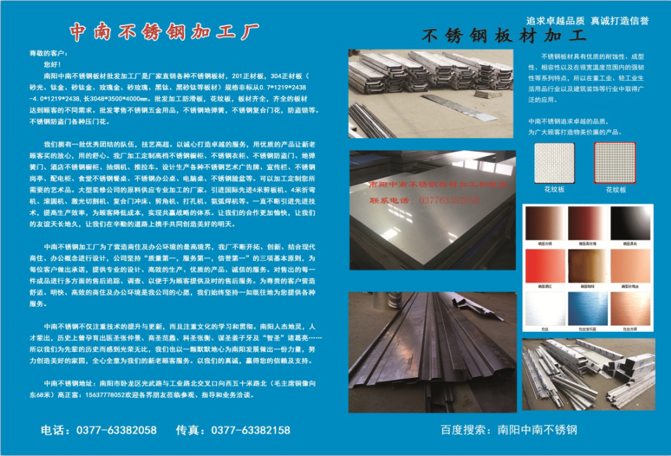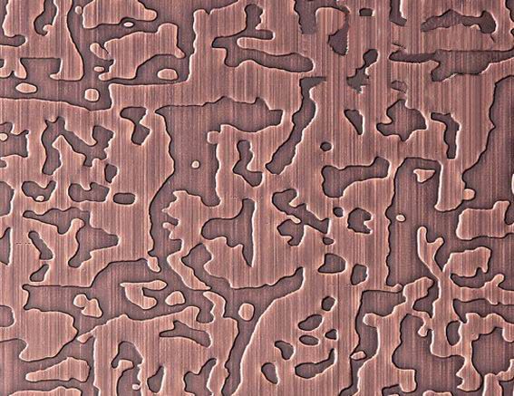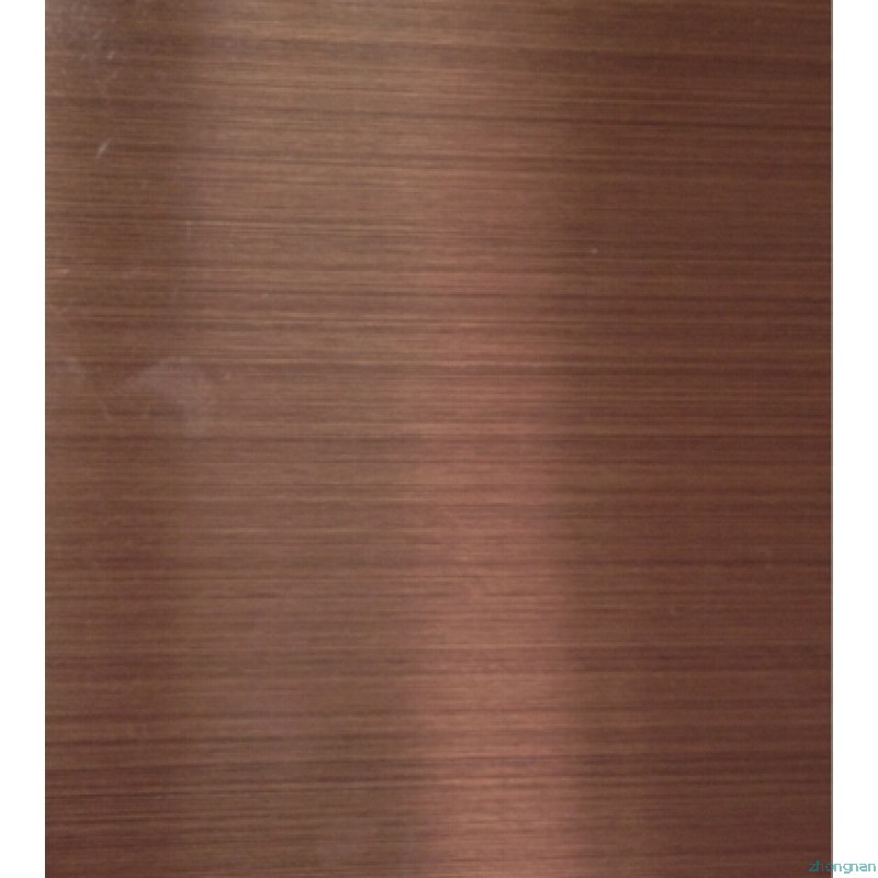 不銹鋼仿古銅板:不銹鋼仿古銅板 ,有紅銅,青銅,仿紅古銅,仿青古銅,亮光紅古銅,亮光青古銅,啞光紅古銅,壓光青古銅等,通過化學(xué)(或電化學(xué))處理,在不銹鋼表面形成一層高抗蝕性氧化膜,給不銹鋼著上古銅色彩,不僅使其保持了不銹鋼原有的各種優(yōu)越性,而且使其耐蝕性能、耐老化性能、耐紫外線照射性能和外觀裝飾效果優(yōu)于普通不銹鋼。不銹鋼仿古銅板具有耐熱性:在沸水中浸漬28天,在200℃以下暴露五個星期,在250℃以下長期暴露,加熱到400℃,膜層色澤均無明顯變化;耐磨性和抗刻劃性能:能隨在500g/cm2的壓強(qiáng)下,橡皮摩擦2000次以上不變色,用300g的鋼針刻劃不劃穿;加工性能:能承受常規(guī)的模壓加工、深拉延、彎曲加工以及加工硬化,進(jìn)行180℃彎曲試驗和8mm的杯突試驗后,氧化膜均完好!