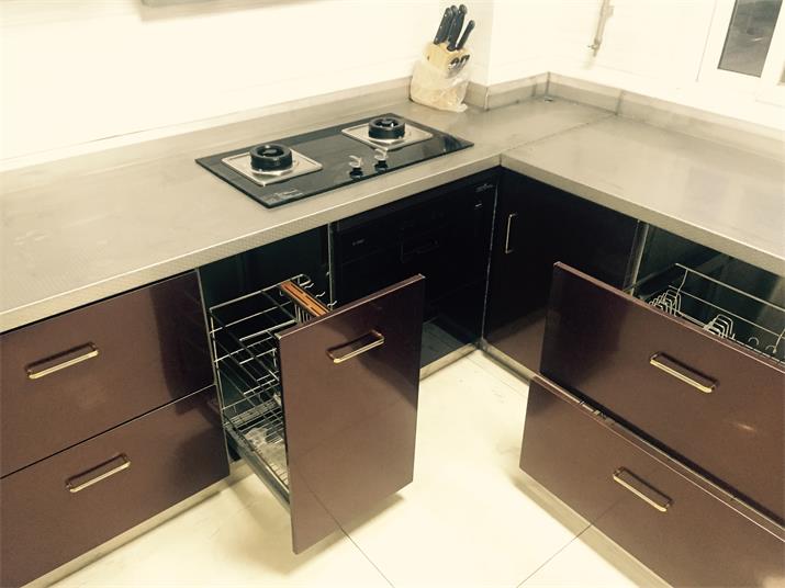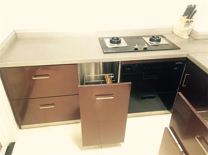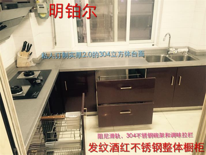 此套酒紅不銹鋼整體櫥柜,臺(tái)面板采用實(shí)厚2毫米304材質(zhì)??梢允褂?00年的不銹鋼整體櫥柜。