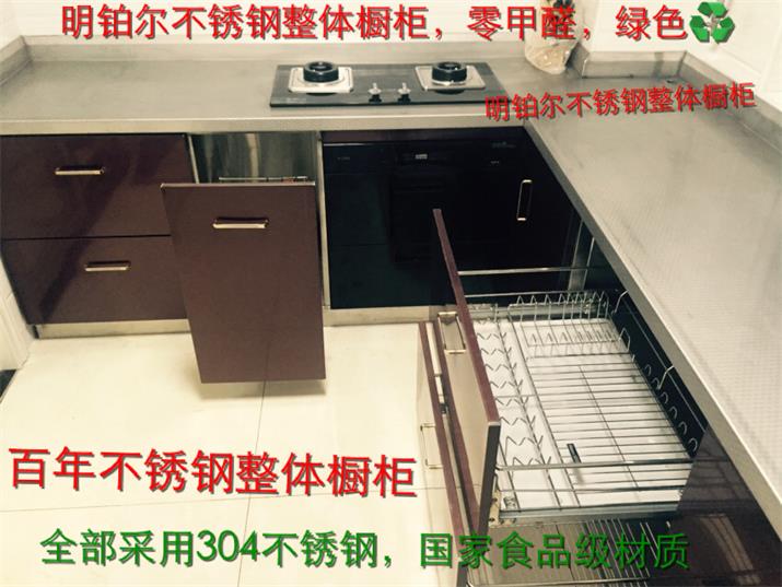 明鉑爾?不銹鋼櫥柜有很多的優(yōu)點(diǎn),屬于國家食品級(jí)材質(zhì),經(jīng)久耐用,可以使用100年,不變形,不褪色,不怕水,不【怕火,
