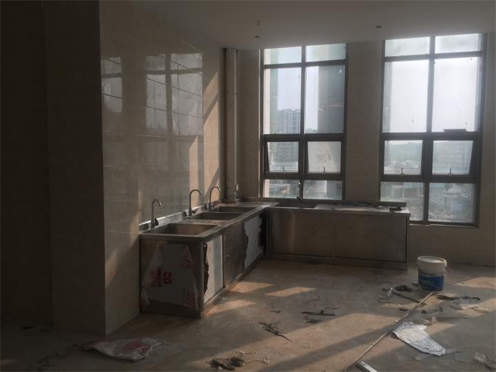 信陽宏信國際大酒店定制設(shè)計(jì)-不銹鋼備餐柜。采用304立方體臺面,單獨(dú)每套分割開,上置不銹鋼層架,方便放餐盤。衛(wèi)生,潔凈,SUS304食品級,可以使用一百年,不變形,不發(fā)脹,不褪色。