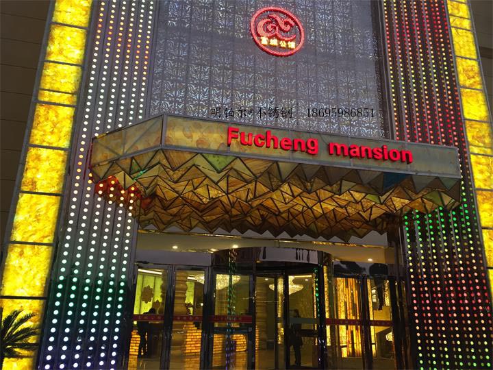 唐河富城公館國際會(huì)所設(shè)計(jì)定制明鉑爾?不銹鋼藝術(shù)屏風(fēng),雕花,造型,旋轉(zhuǎn)門工程