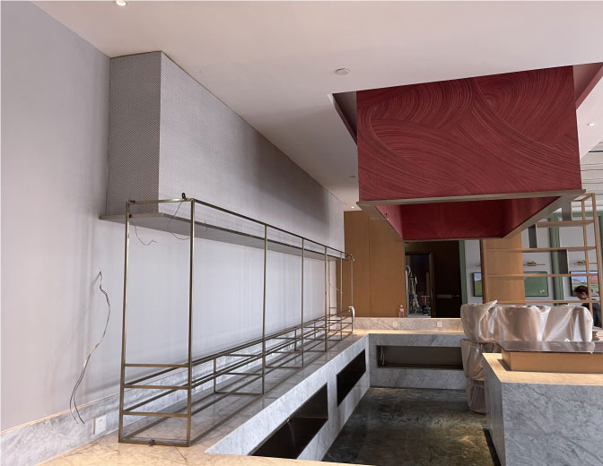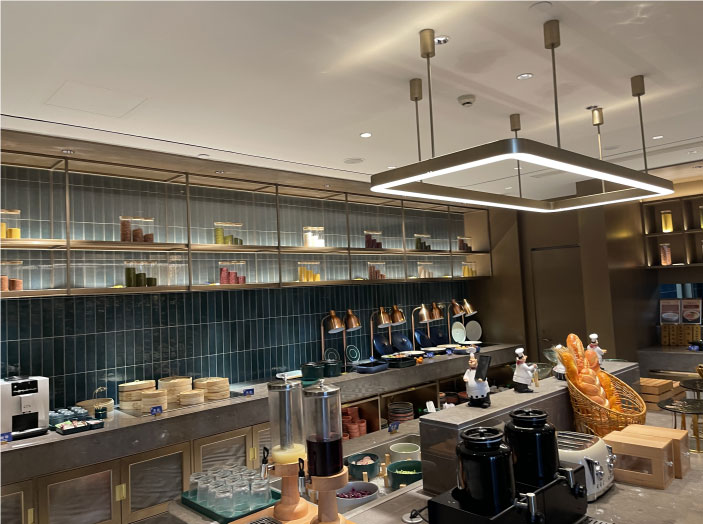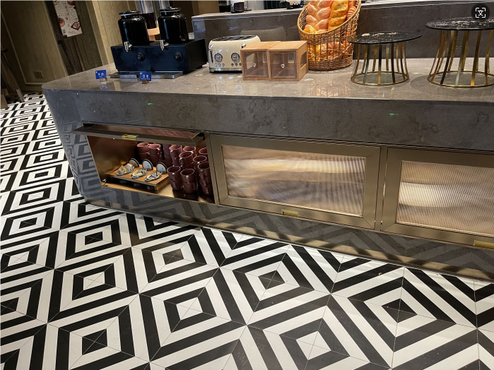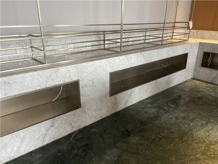 早餐區(qū)窄邊框電鍍304不銹鋼置物架,施工前后對(duì)比