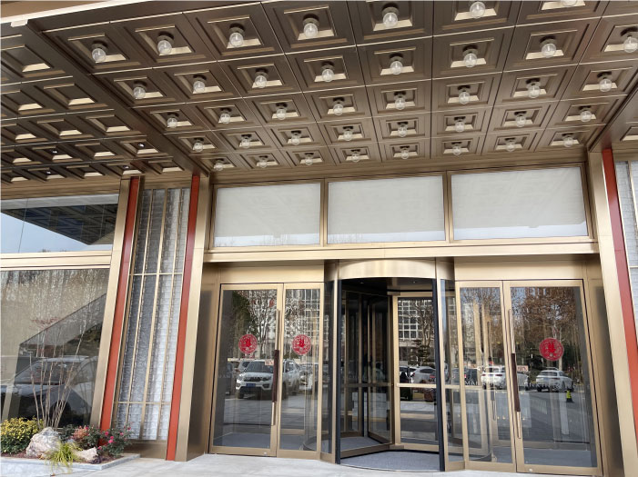 漫心酒店不銹鋼定制門(mén)頭和不銹鋼自動(dòng)旋轉(zhuǎn)門(mén)